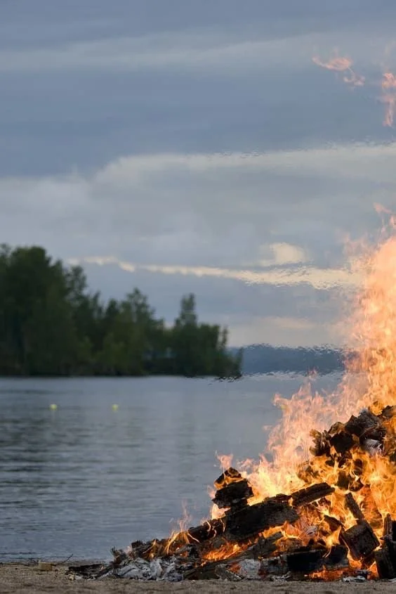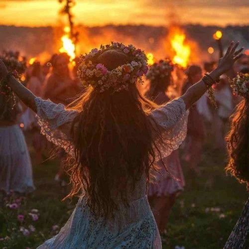 En Suède, la fête de Midsommar est encore très populaire, on danse pieds nus dans l’herbe, les jeunes filles portent des robes blanches et des couronnes de fleurs et on élève des mâts auxquels sont suspendues de grandes couronnes végétales et des rubans colorés.