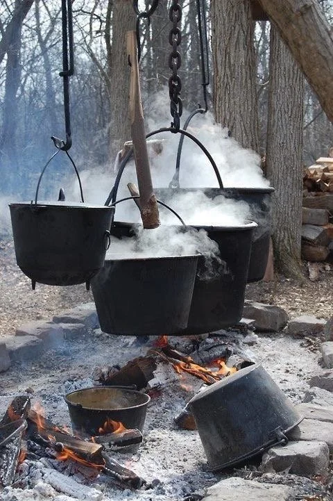 L'une des métaphores fréquemment utilisées pour décrire le fonctionnement des Trois Foyers et celle du chaudron. Si on observe un chaudron dans lequel mijote de la soupe (vous pouvez aussi vous représenter une casserole sur votre plaque à induction, mais l'image est moins évocatrice ...). On voit que sous le chaudron brûle un feu de moyenne intensité, car des braises ne suffiraient pas, et des flammes trop vives feraient brûler le contenu. On peut aussi remarquer qu'un fumet de vapeur s'élève au-dessus de la soupe.