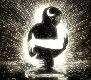 Au niveau individel, l’”autre côté du voile” peut aussi être notre part d’ombre, ce que nous ne connaissons pas de nous-mêmes, ou ce que nous connaissons mais refusons d’intégrer, les souffrances du passé, les peurs du présent et de l’avenir, les doutes, la honte, mais aussi les potentiels encore inconnus, les réserves d’énergie et de courage encapsulées dans ces zones obscures de notre être, et qui ne peuvent être libérées que par la volonté consciente de se “relier” à cette profondeur obscure, qui est nous-même, mais aussi quelque chose de plus …..