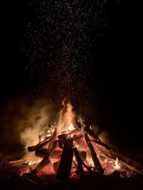 Il semble d’ailleurs que le terme anglais « bonfire » (feu de joie) provienne de « bone-fire » (feu des os) car les os des animaux sacrifiés lors de la fête étaient jetés dans ces feux cérémoniels.