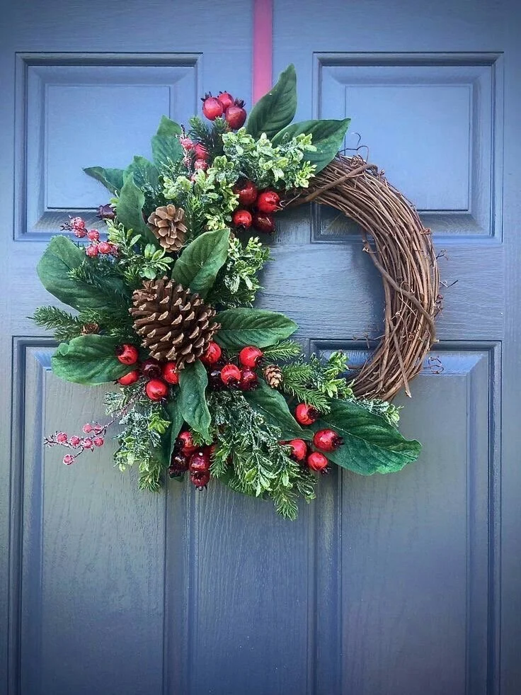 La couronne faite de branches de sapin, de houx et de gui a la même signification que le sapin, elle peut être suspendue à la porte d’entrée de la maison, ou posée à plat sur un meuble. Dans ce cas on la garnit de quatre bougies rouges, qui vont symboliser les quatre saisons, et qu’on allumera une à une pendant les quatre semaines précédant Yule.