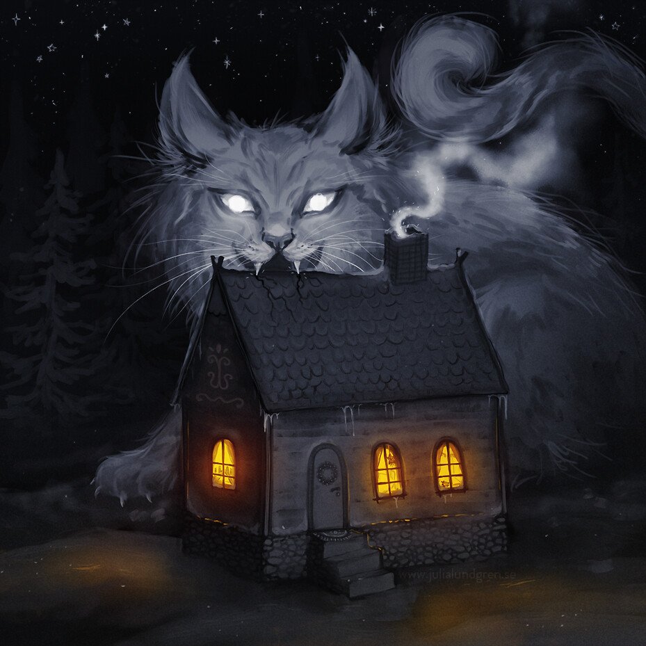 Les “chaussettes de Noël” sont aussi associées à une légende islandaise beaucoup moins festive : il s’agit de Jòlakötturinn, le Chat de Yule, un chat géant qui rôde dans les campagnes pendant la nuit de Yule. Il regarde par les fenêtres des maisons pour voir quels enfants n’ont pas reçu assez de vêtements neufs, en particulier des bas, ce qui signifie qu’ils n’ont pas été assez sages ni travailleurs. Les trublions sont alors sévèrement punis, car le Jòlakötturinn entre dans la maison et les dévore, Joyeux Yule !