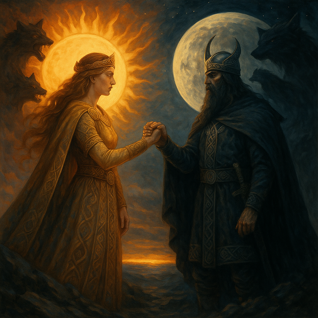 Cette constatation explique peut-être le choix a priori étonnant du genre féminin attribué au soleil die Sonne, et du genre masculin de la lune der Mond dans les mythologies et les langues germaniques et scandinaves. Dans la mythologie nordique la déesse-Soleil qui traverse le ciel sur son char se nomme Sòl, et le dieu-Lune se nomme Mani.