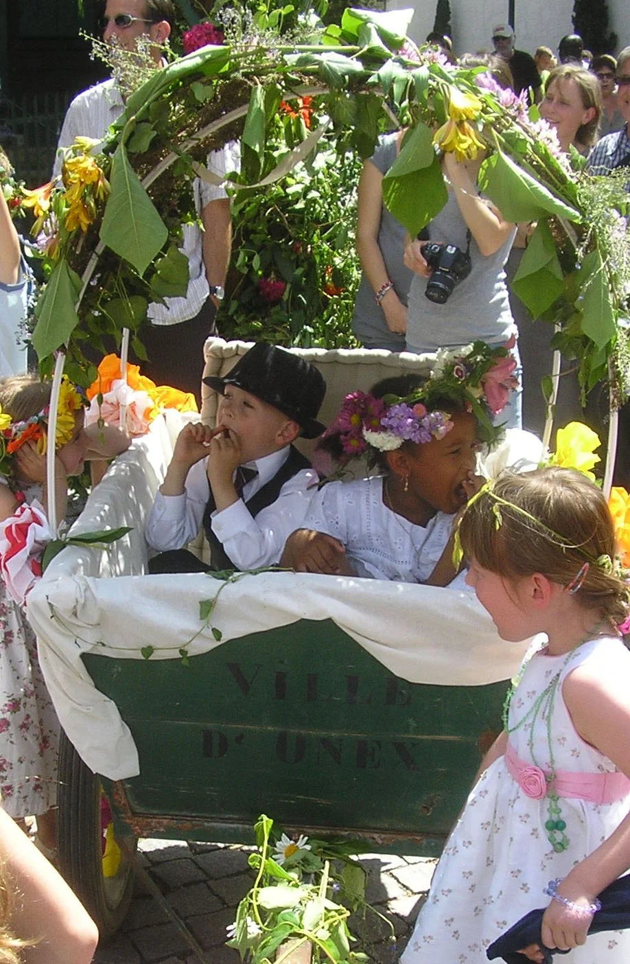 Mes enfants gardent un souvenir ravi de la « course aux œufs », et haïssent à tout jamais les couronnes de fleurs qu’on leur posait sur la tête à sept heures du matin, tout juste sorties des bassines d’eau glacée où elles avaient passé la nuit….