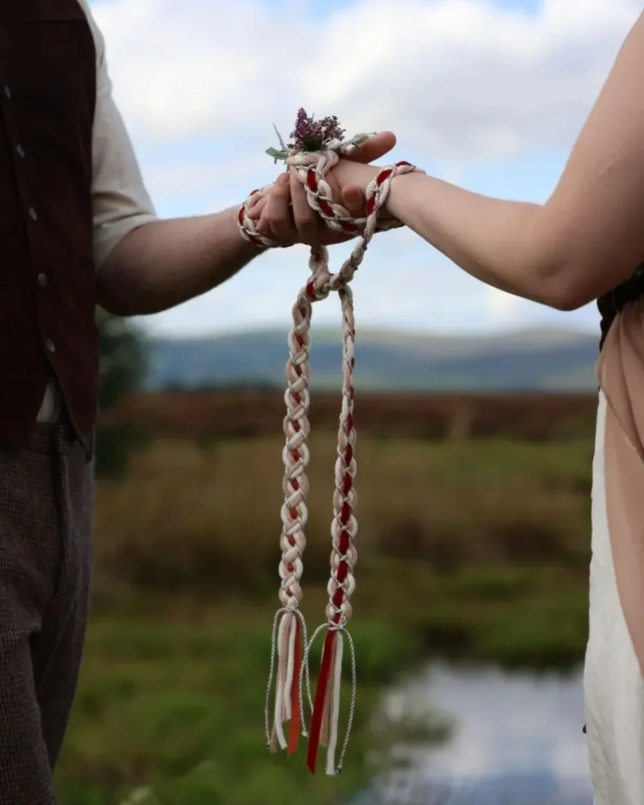 A ma connaissance, les mariages n’avaient pas forcément lieu au printemps, mais il est probable que l’arrivée de la belle saison ait favorisé ces rituels, qui comprenaient l’échange d’anneaux, mais aussi le traditionnel handfasting (lien des mains) qui est toujours en usage en Ecosse.