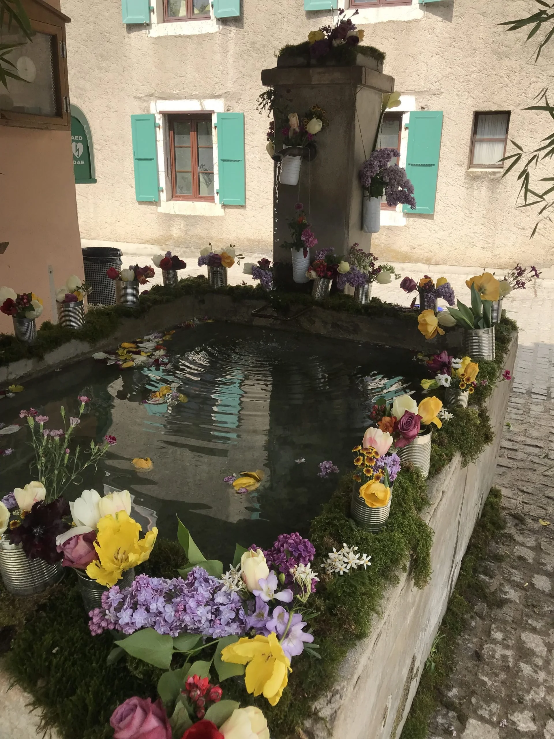 Dans la semaine qui précède, les enfants nettoient et décorent les fontaines du village.