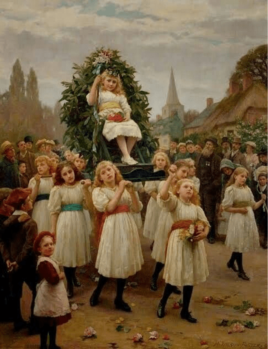 La tradition de la Belle de Mai, ou de la Reine de Mai est encore vivace dans de nombreuses régions. Il s’agit la plupart du temps de défilés d’enfants coiffés de couronnes de fleurs, qui suivent l’élection de la Reine – ou du Roi et de la Reine- de Mai.